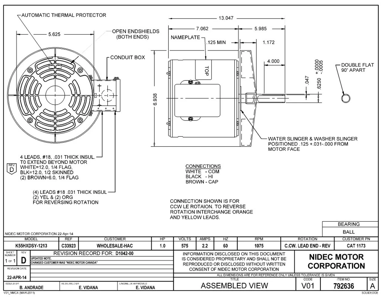 - 1 hp 1075 RPM 1-Speed 575V 2.2 amps