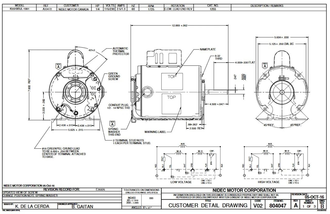 Permanent Split Capacitor Motor. Automatic Overload Protection. Continuous Duty; Totally Enclosed Air Over Enclosure; 40C Ambient Temperature; 60 Hertz. K055RJL1991012B. Ventilation Direct Drive Blower Motor.