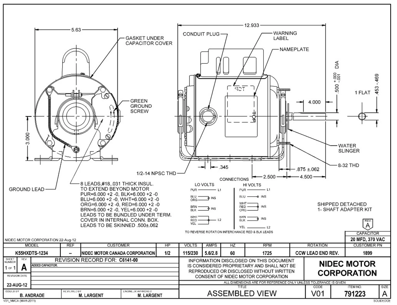 Permanent Split Capacitor Motor. Automatic Overload Protection. Continuous Duty; Totally Enclosed Air Over Enclosure; 40C Ambient Temperature; 60 Hertz. K055DTS1234012B. Ventilation Direct Drive Blower Motor.