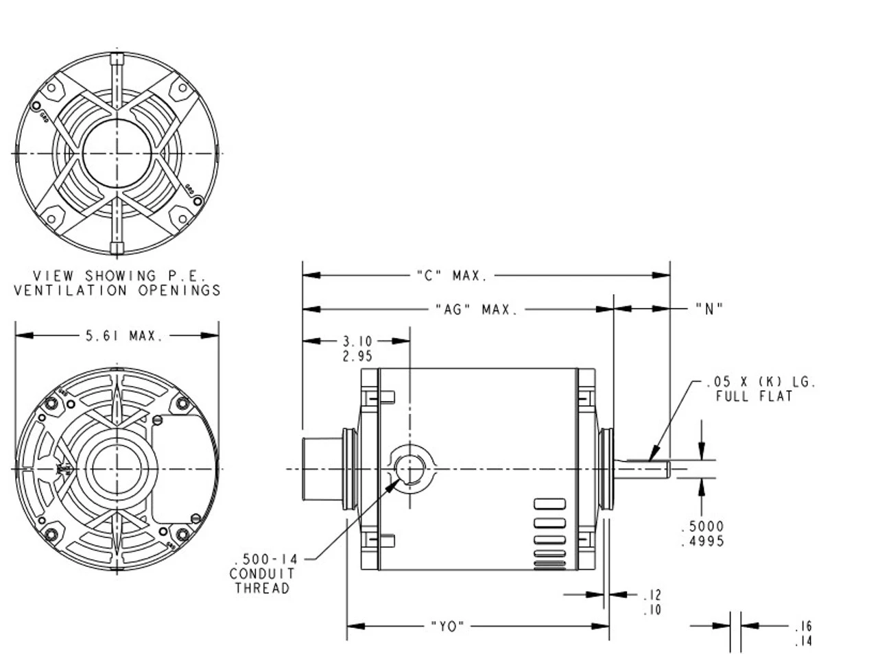 - NEMA 48Y Frame Flat Shaft 1 1/2″ x 1/2″ Diameter, 1 speed