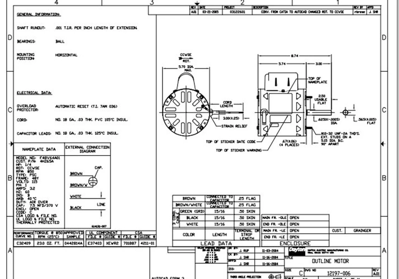 Continuous Duty, Open Air Over, Class B Insulation. Replacement Motor for 4HZ23, 4HZ41, 4HZ43 Dayton Ventilators