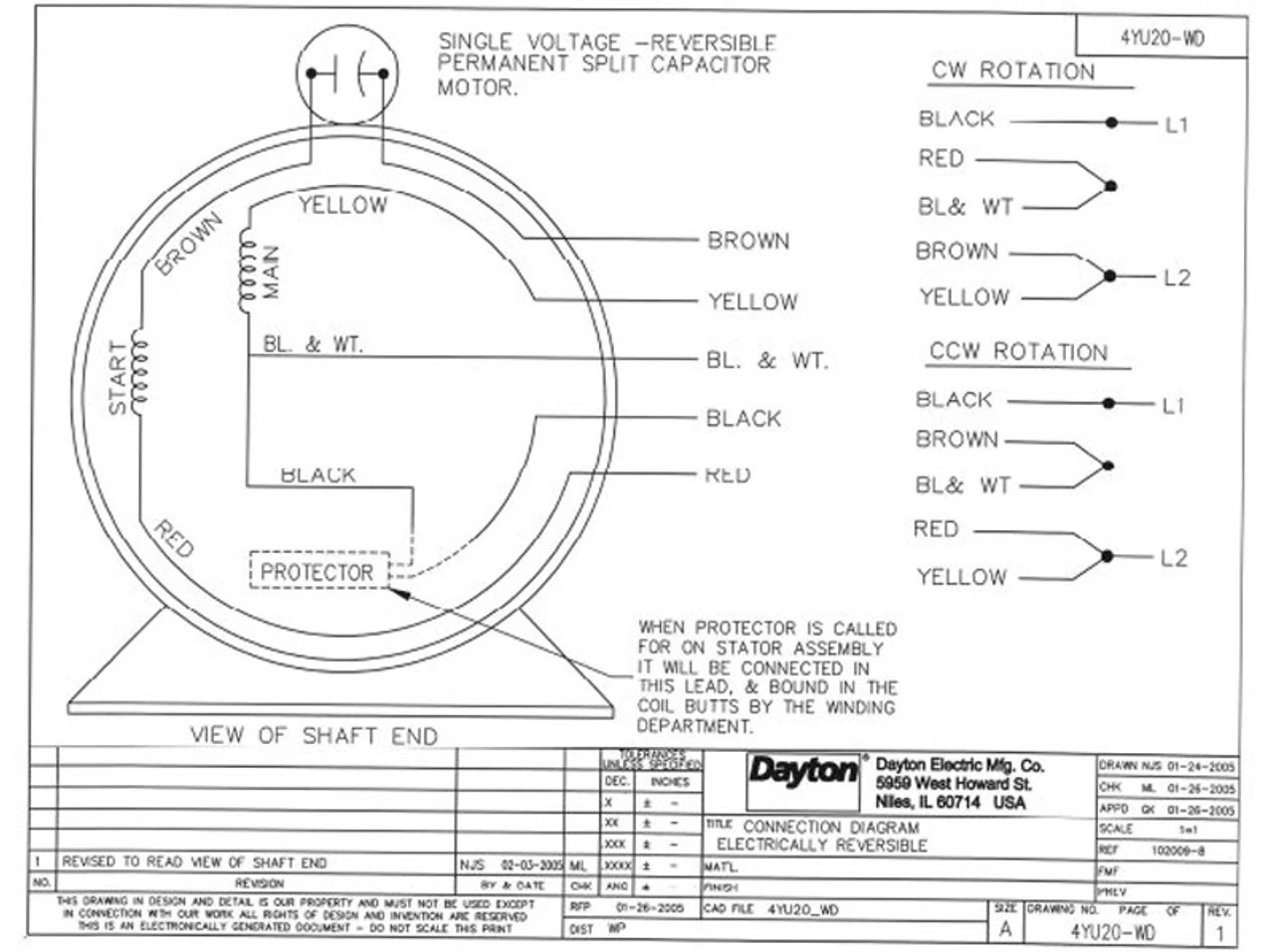 Continuous Duty, Open drip proof, Class B Insulation. Replacement Motor for 4HZ52, 4HZ54, 4YC73 Dayton Ventilators