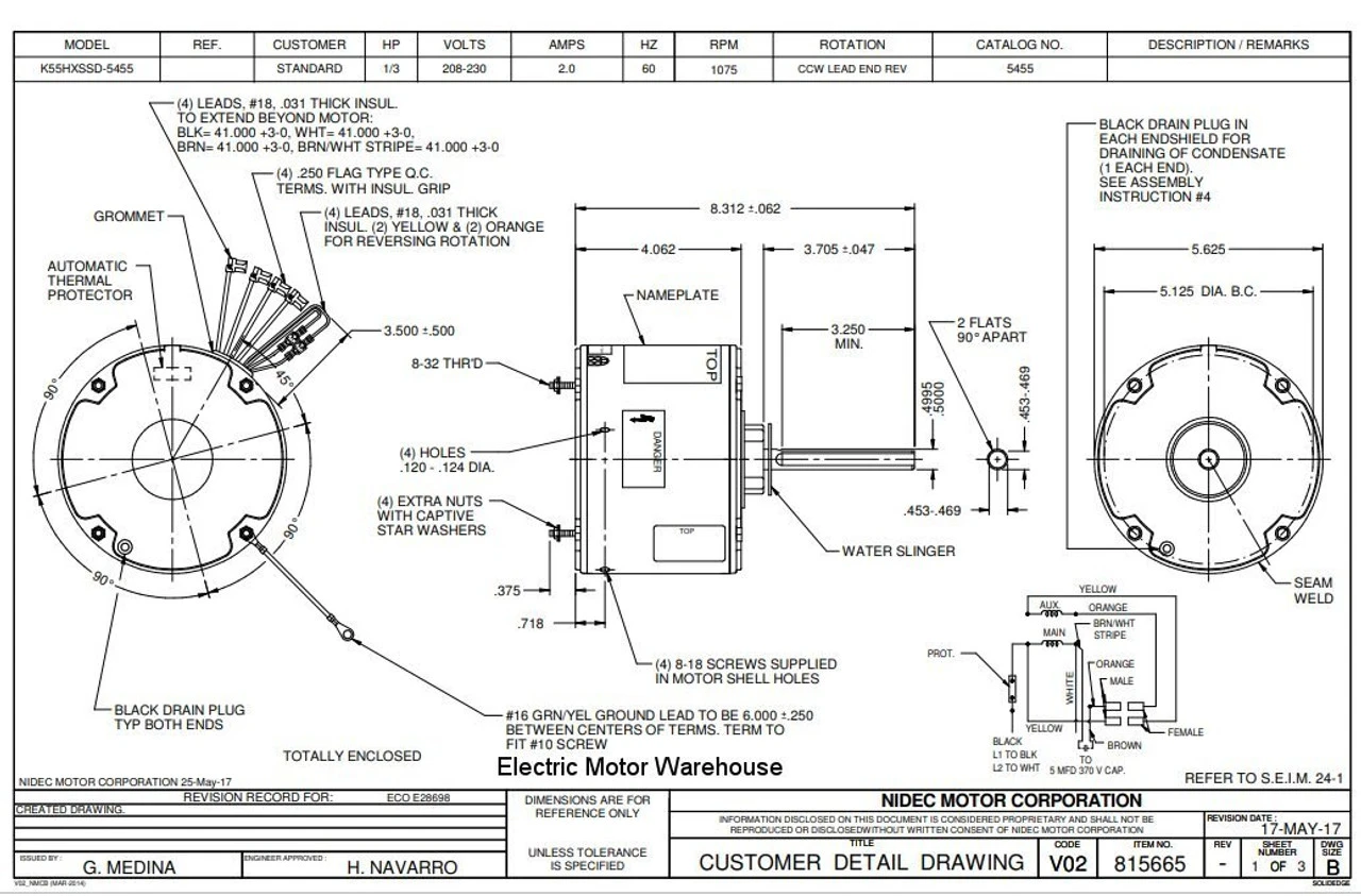 Permanent Split Capacitor Motor. Automatic Overload Protection. Continuous Duty; Totally Enclosed Air-Over Enclosure; Class B Insulation; 40C Ambient Temperature; 41″ Leads. K055SSD5455862B; Suggested aftermarket replacement for Rheem: 51-20687-01, 51-20688-01, 51-20689-01, 51-20690-01, 51-21836-01, 51-21836-01, 51-21837-01, 51-21838-01, 51-21839-01, 51-21845-03, 51-23053-11, 51-41315-01, 51-41316-01, 51-41317-01.Â