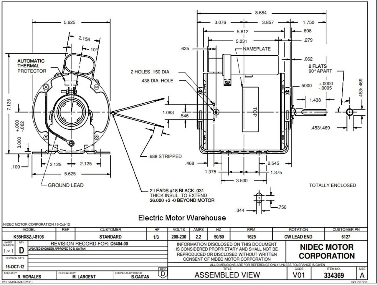 - 1/3 hp 1625 RPM 1-Speed 208-230V 2.2 amps