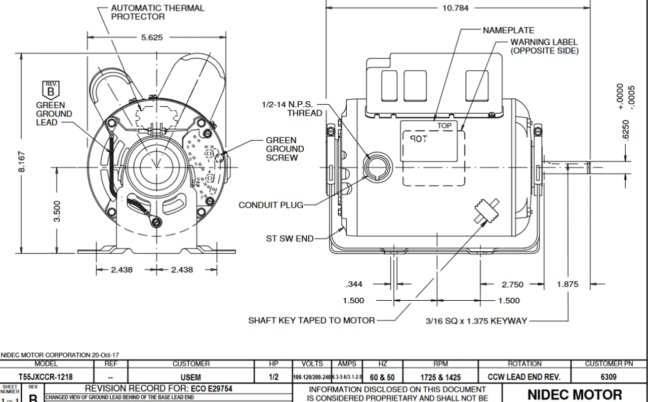 - Resilient Base Mount, Ball Bearings, Class B Insulation, Rev