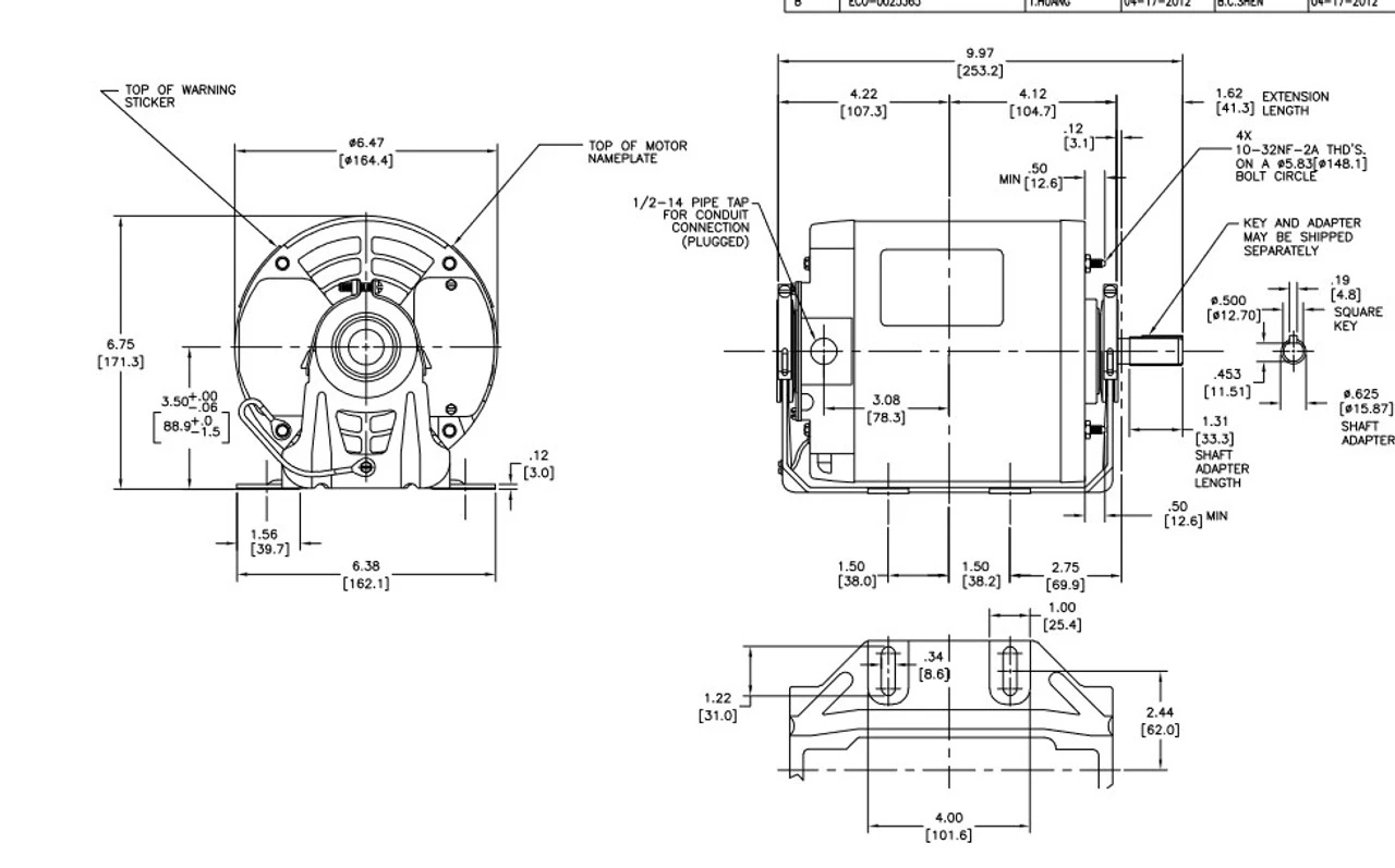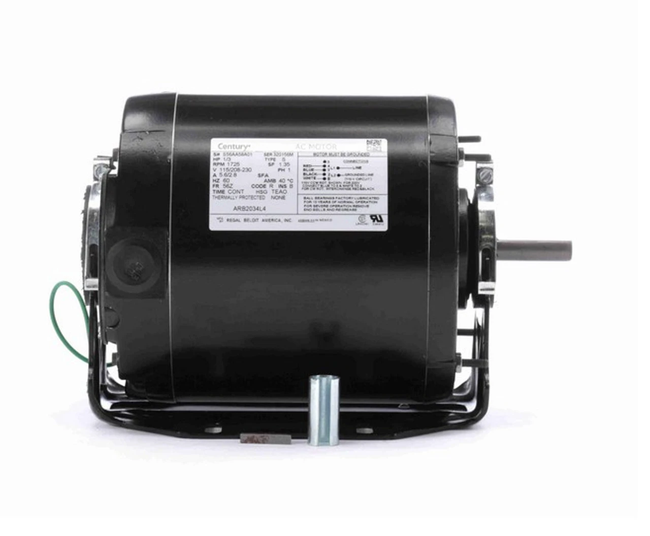 - 1/3 hp 1800 RPM, 5.6/2.8 amps, 115/208-230 Volts 60 Hz, Split Phase