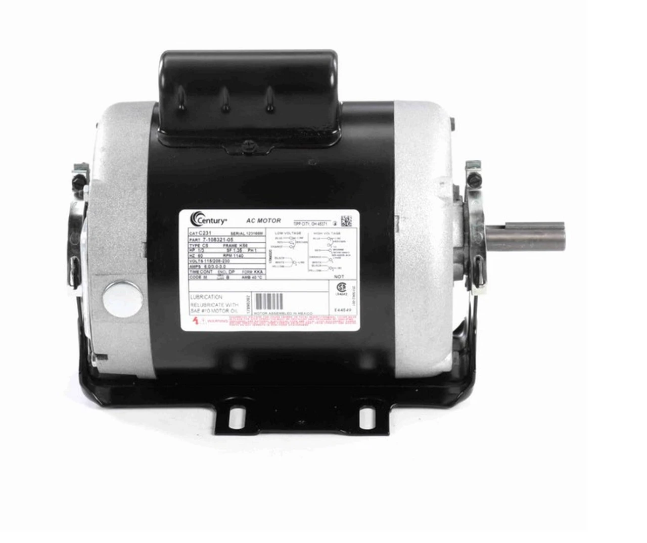 - 1/3 hp 1200 RPM, 6.0/3.0-3.0 amps, 115/208-230 Volts 60 Hz, Capacitor Start