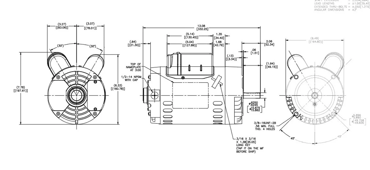 - NEMA 56C Rolled Steel frame, C-face, Keyed Shaft 5/8″ Diameter x 1 7/8″
