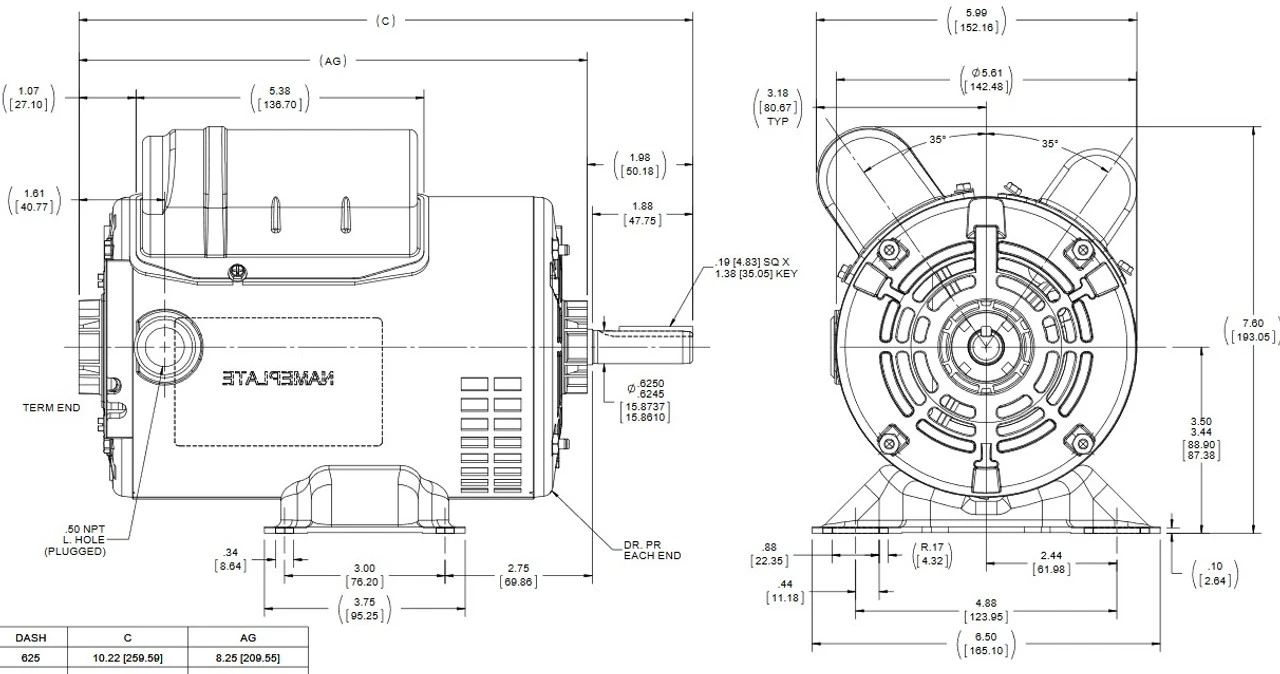 - NEMA 56 frame, Keyed Shaft 5/8″ Diameter x 1 7/8″