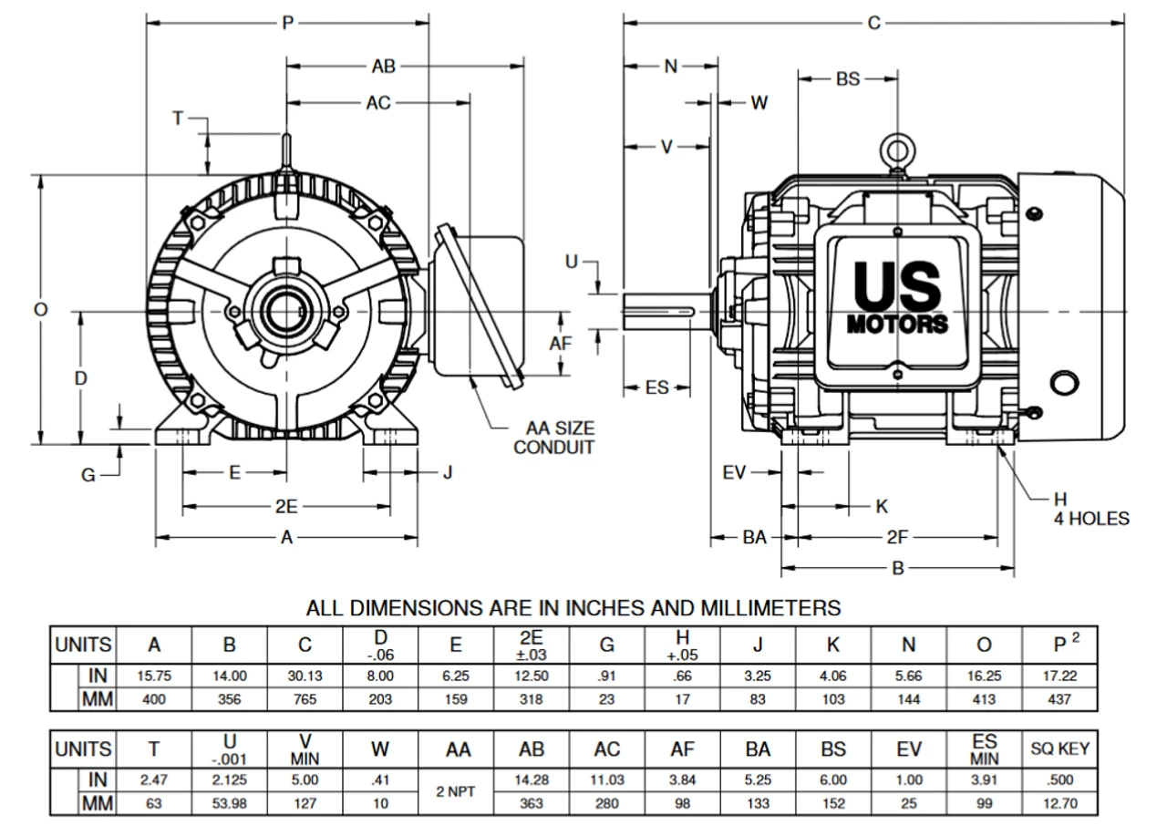 - NEMA 324T Cast Iron frame Keyed Shaft 2 1/8″ Diameter x 5 1/4″