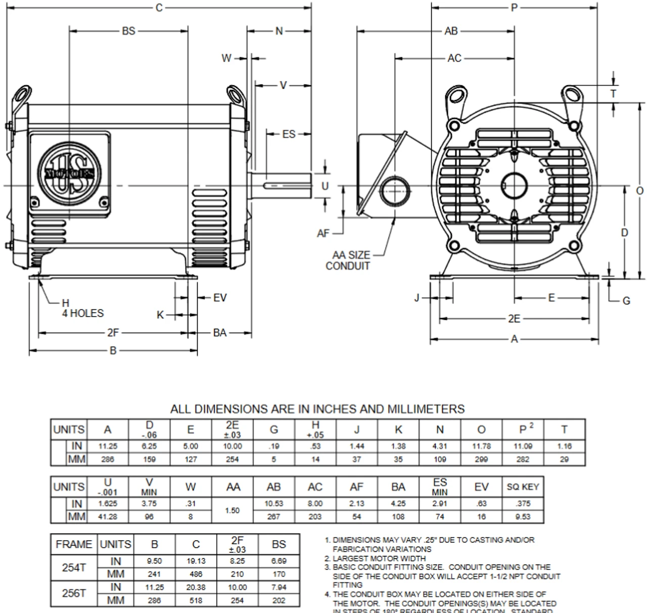 - NEMA 256T Rolled Steel Frame, Keyed Shaft 1 5/8″ Diameter x 4″