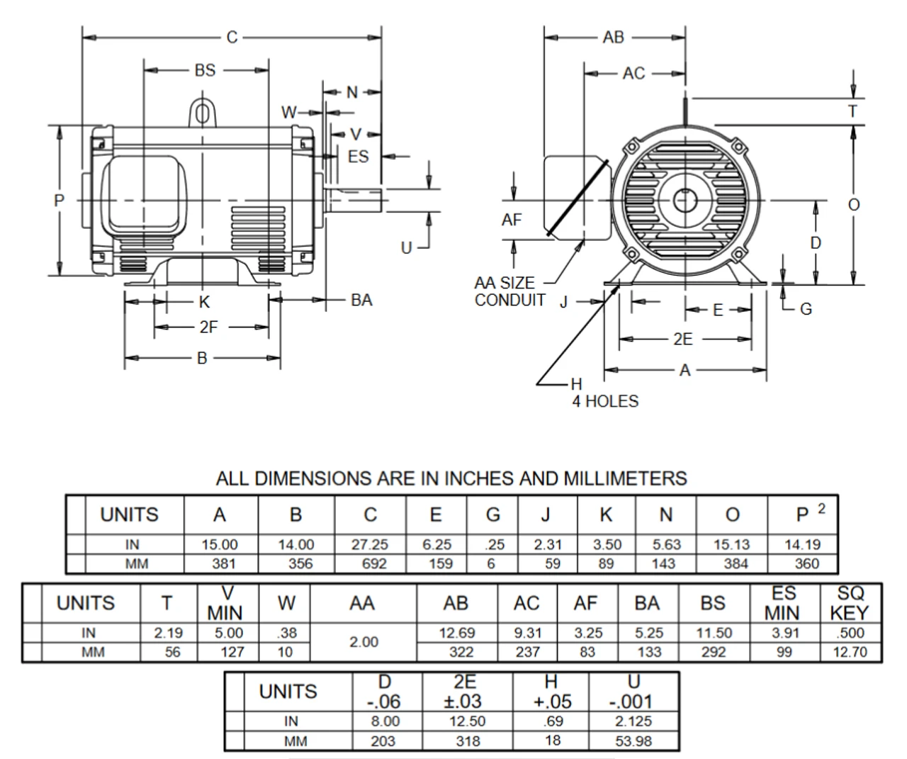 - NEMA 324T Rolled Steel Frame, Keyed Shaft 2 1/8″ Diameter x 5 1/4″