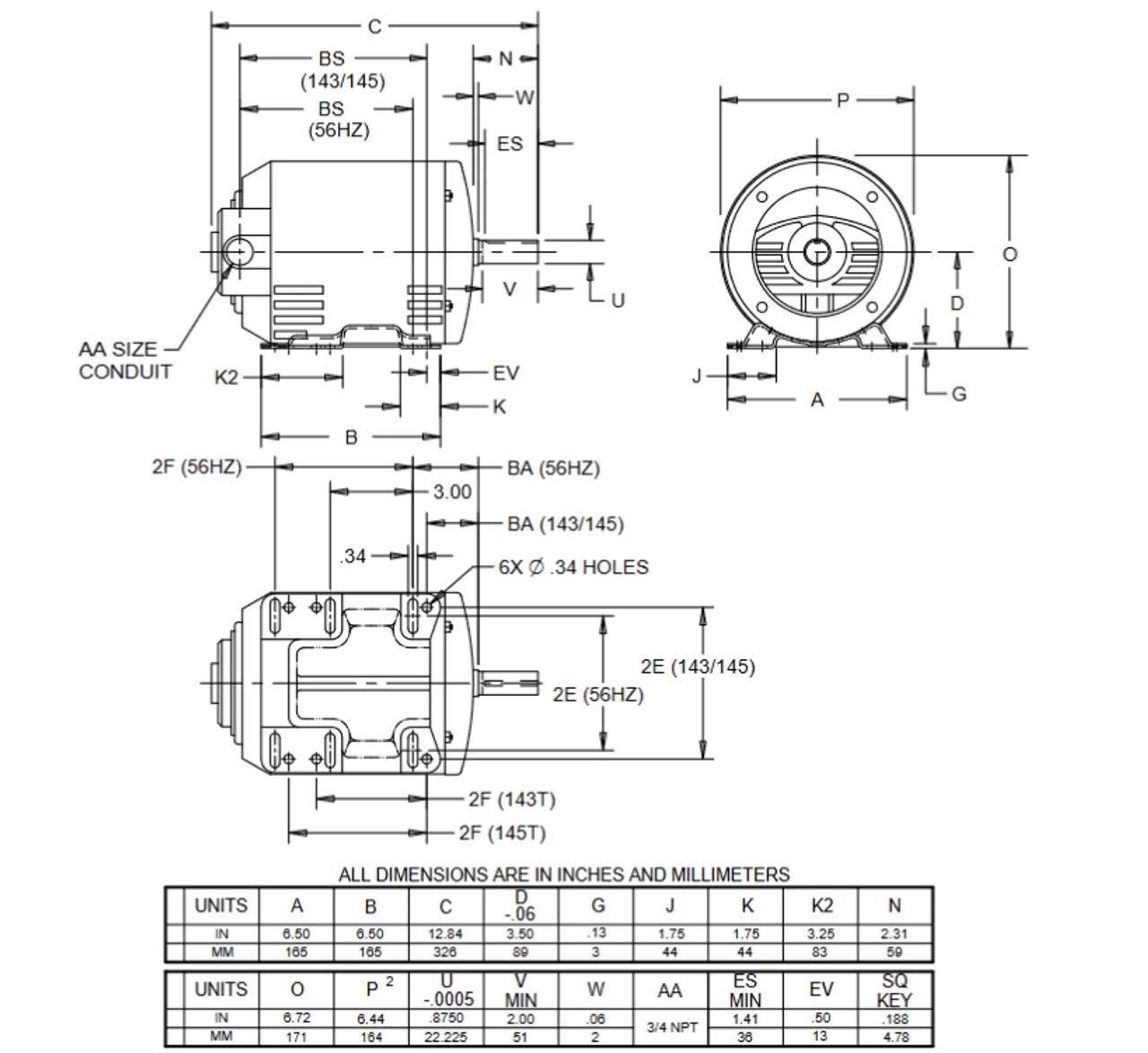 - NEMA 145T Rolled Steel Frame, Keyed Shaft 7/8″ Diameter x 2 1/4″
