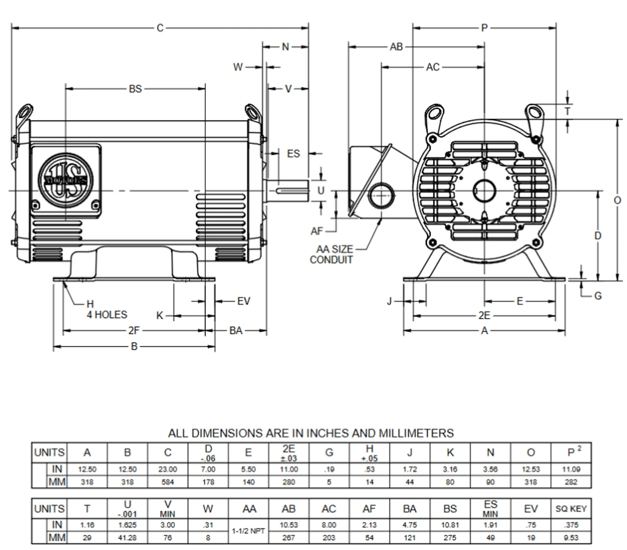 NEMA 284TS Rolled Steel Frame with Cast Iron End Bells, Keyed Shaft 1 5/8″ Diameter x 3 1/4″
