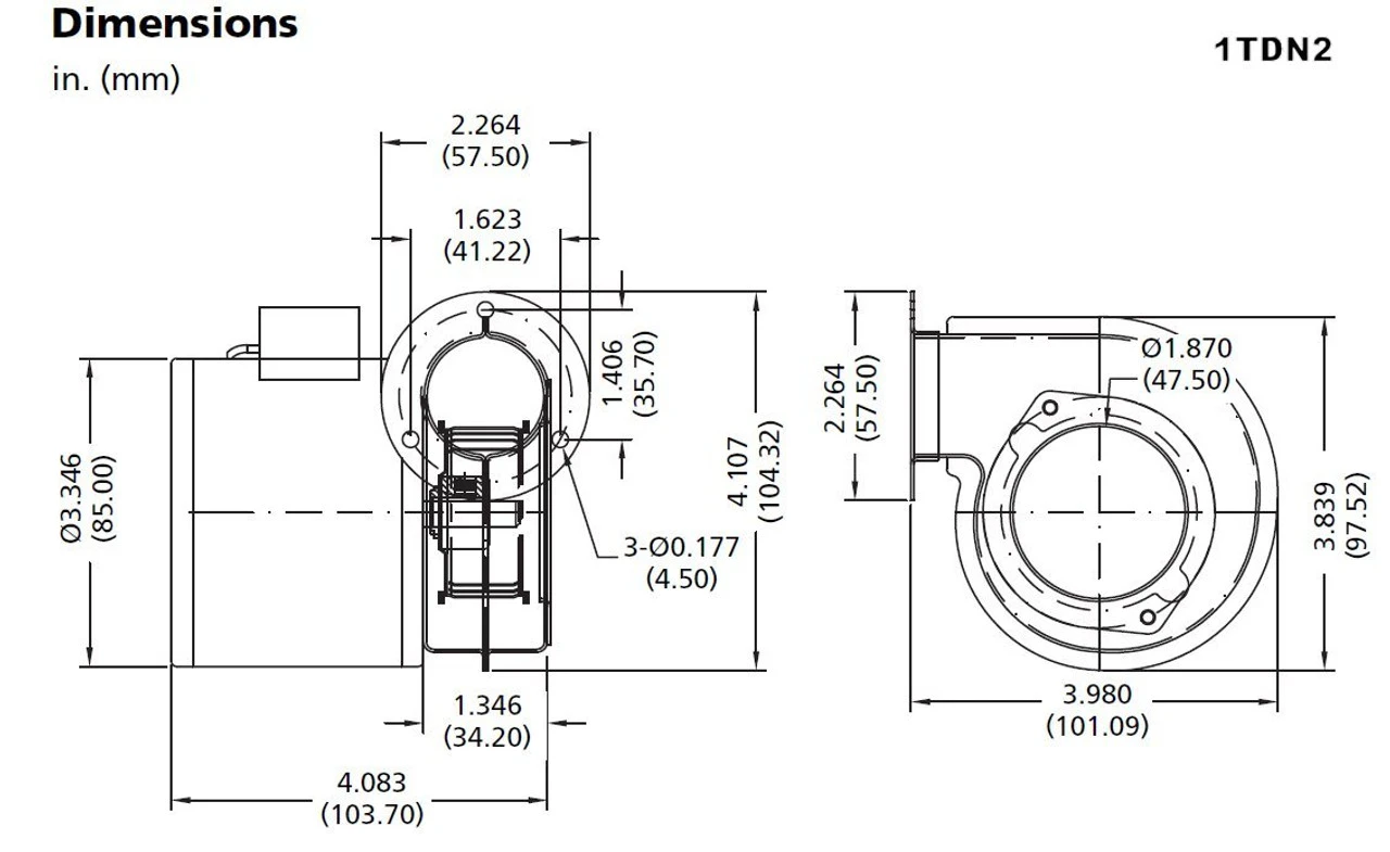 - 12 CFM, 3340 RPM, 0.08 amps, 115 Volts 60/50hz.