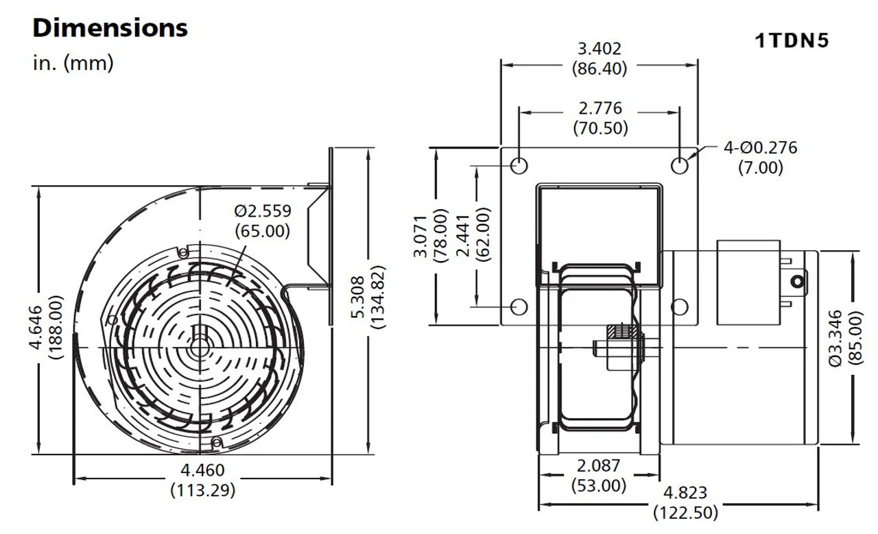 - 54 CFM, 3340 RPM, 0.3 amps, 115 Volts 60/50hz.