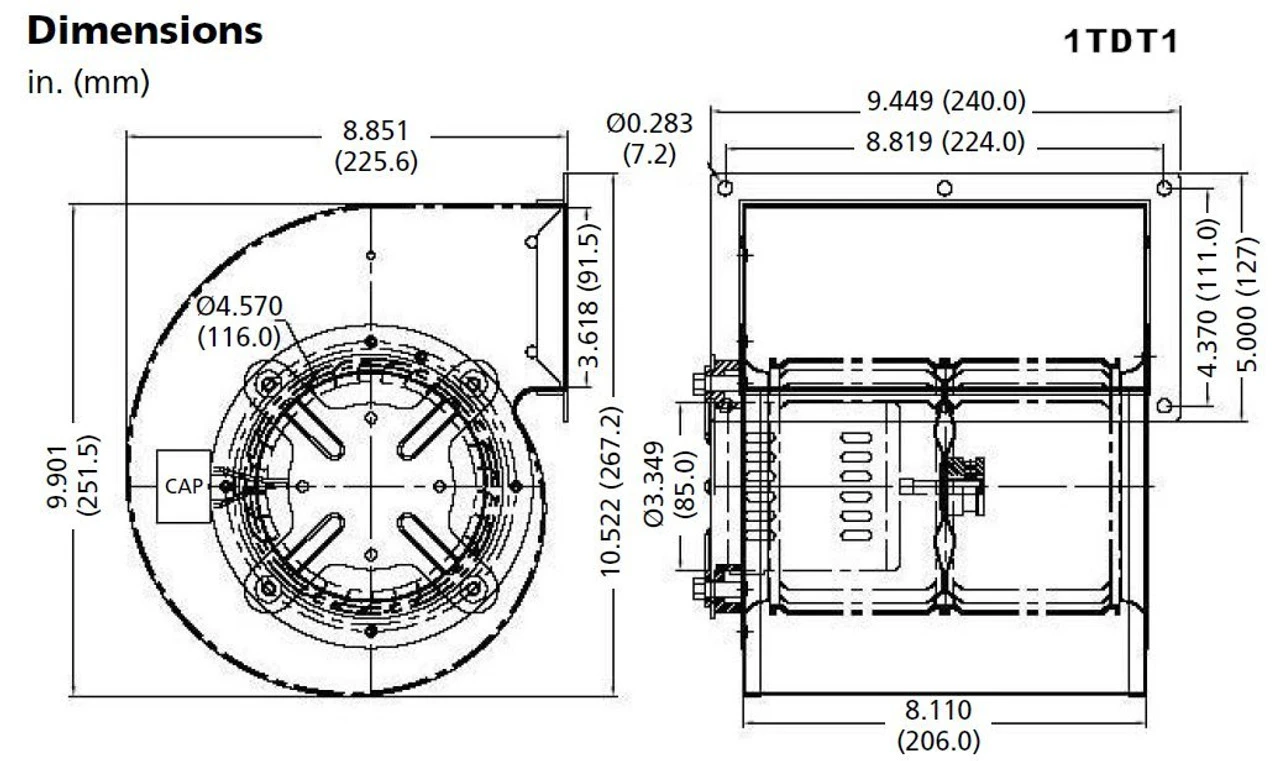 - 458 CFM, 1530 RPM, 0.65 amps, 230 Volts 60/50hz.