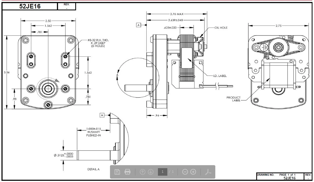 - 1/300 hp, 3.3 RPM, 1/250 hp, 0.14 amps, 230V 50hz.