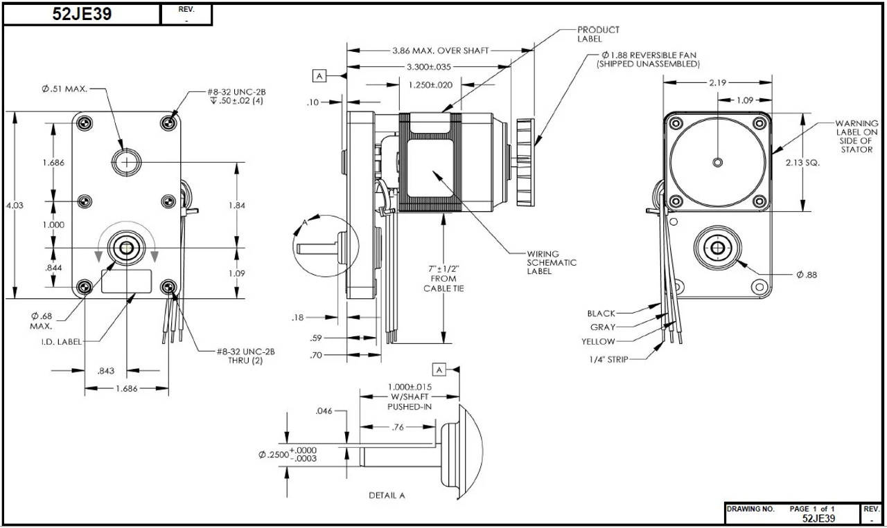 - 1/150 hp, 4 RPM, 0.35 amps, 115 volts 60hz.