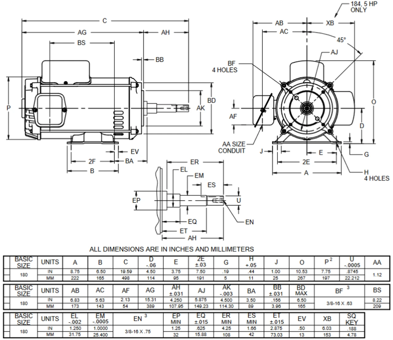 - NEMA 184JM Rolled Steel Frame, JM steel shaft