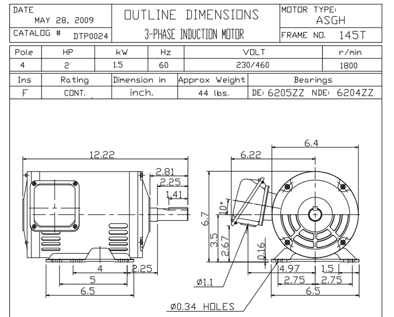 - NEMA 143/145T Frame, Keyed Shaft 7/8″ Diameter x 2 1/4″