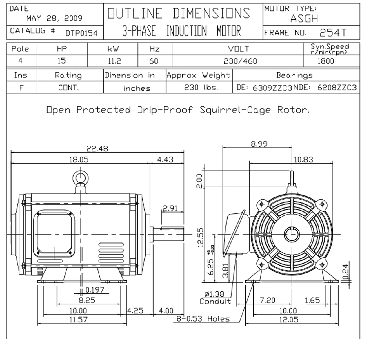 - Rolled Steel Frame, Enclosure: Open Drip Proof (IP22)