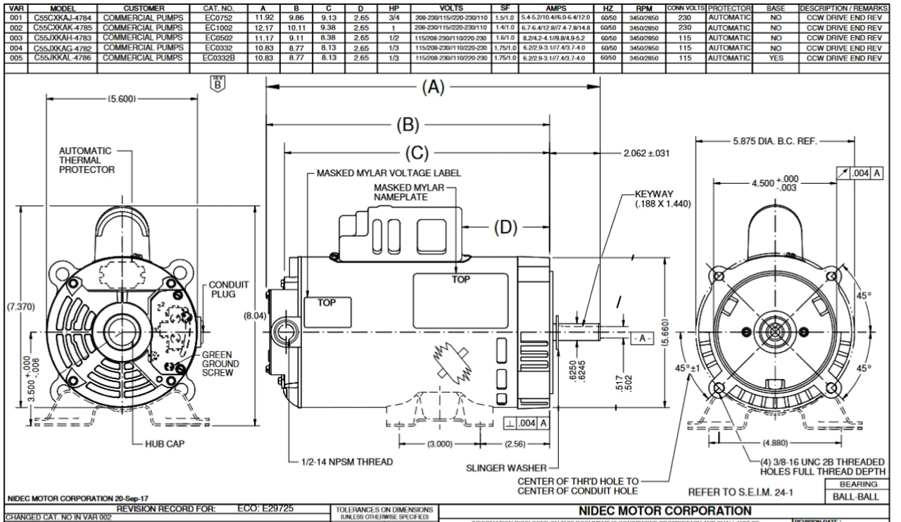 Commercial C-Face pump motor can be used for many applications. Wiring diagram on motor name plate. ODP = Open Drip Proof. C055KAJ4784014J