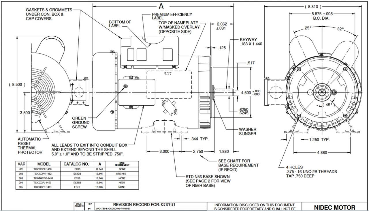 - NEMA 56C Frame, Keyed Shaft 5/8″ Diameter x 1 7/8″ Long