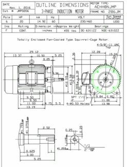 JPP0206 TECO Westinghouse 20 Hp 1200 RPM 286JP Cast Iron 230/460V TEFC Close-Coupled 3-Phase Motor