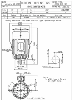 HBV0024C TECO-Westinghouse 2 Hp 1800 RPM 145TC Vertical 460V TEFC Severe Duty Petro-Chem 3-Ph Motor