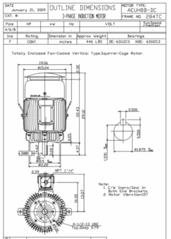 HBV0254C TECO-Westinghouse 25 Hp 1800 RPM 284TC Vertical 460V TEFC Severe Duty Petro-Chem 3-Ph Motor