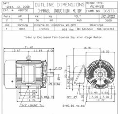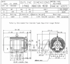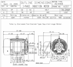 HB0756 TECO-Westinghouse 75 Hp 1200 RPM 405T 460V TEFC Severe Duty Petro-Chem 3-Ph Motor