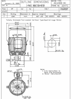 HBV0404C TECO-Westinghouse 40 Hp 1800 RPM 324TC Vertical 460V TEFC Severe Duty Petro-Chem 3-Ph Motor