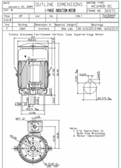 HBV0506C TECO-Westinghouse 50 Hp 1200 RPM 365TC Vertical 460V TEFC Severe Duty Petro-Chem 3-Ph Motor