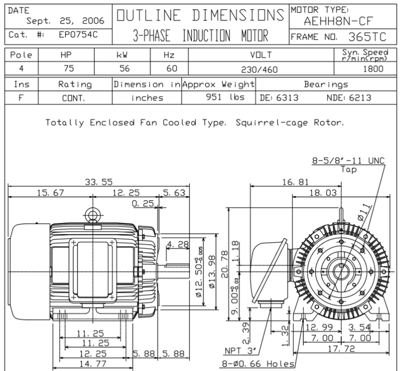 - Suitable for Inverter Use per NEMA MG-1 Part 31.4.4.2