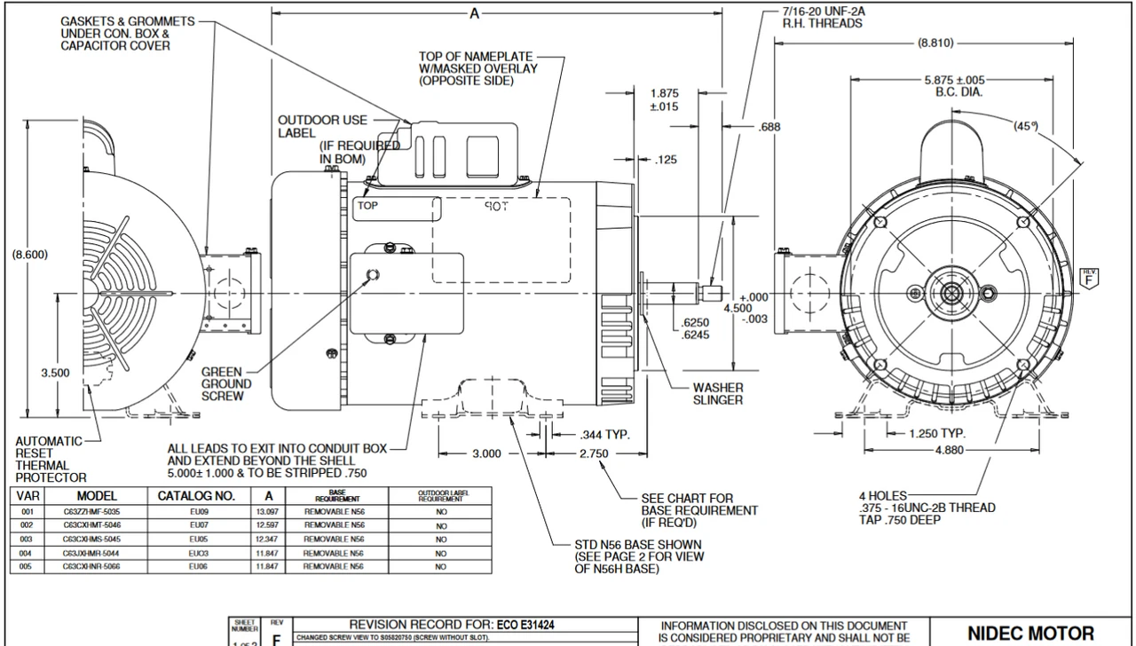 - Removable Base Mount, Ball Bearings, Class B Insulation, CW lead end