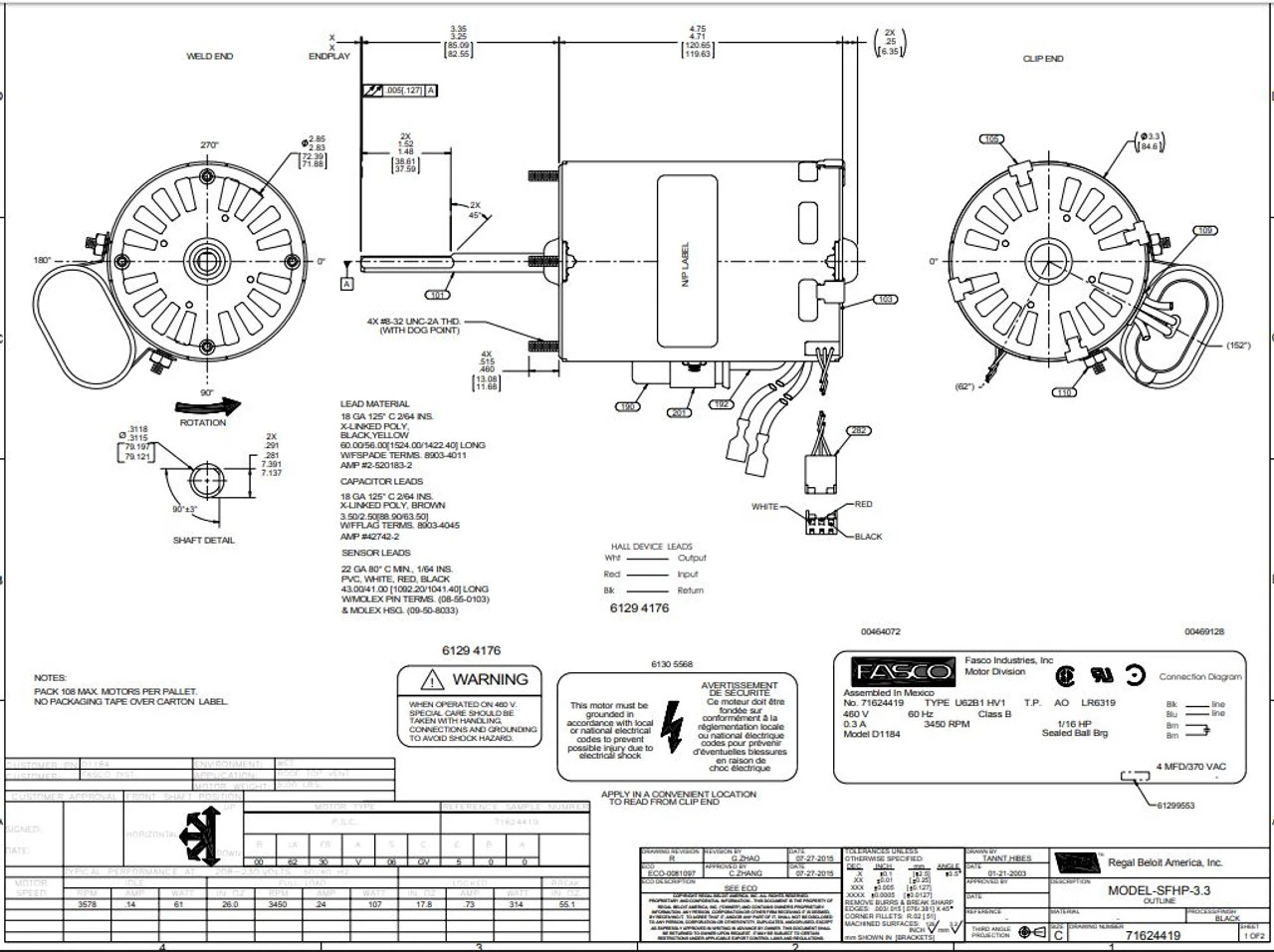 - 1/16 hp 3450 RPM, .3 amps, 460 Volts Single Phase