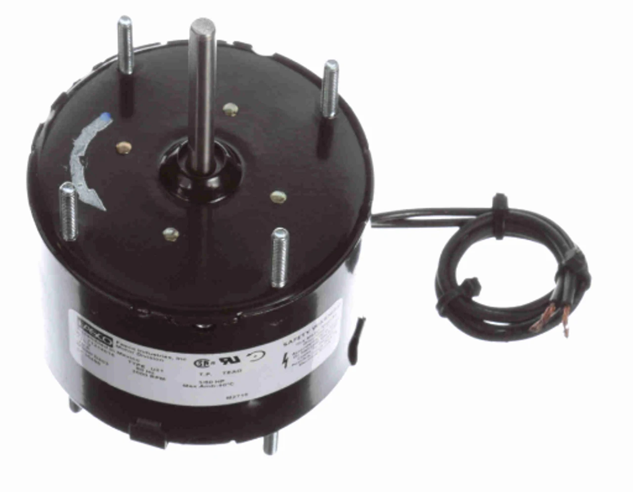 Shaded Pole, Totally Enclosed, Air Over. Extra studs can be cut off if not needed. Shaft can also be shortened with a hack saw if necessary. Shaft bushing is also available, 1/4″ to 5/16″ (part # KIT240). Motor is common to many Kitchen exhaust fans. Dayton 38N564