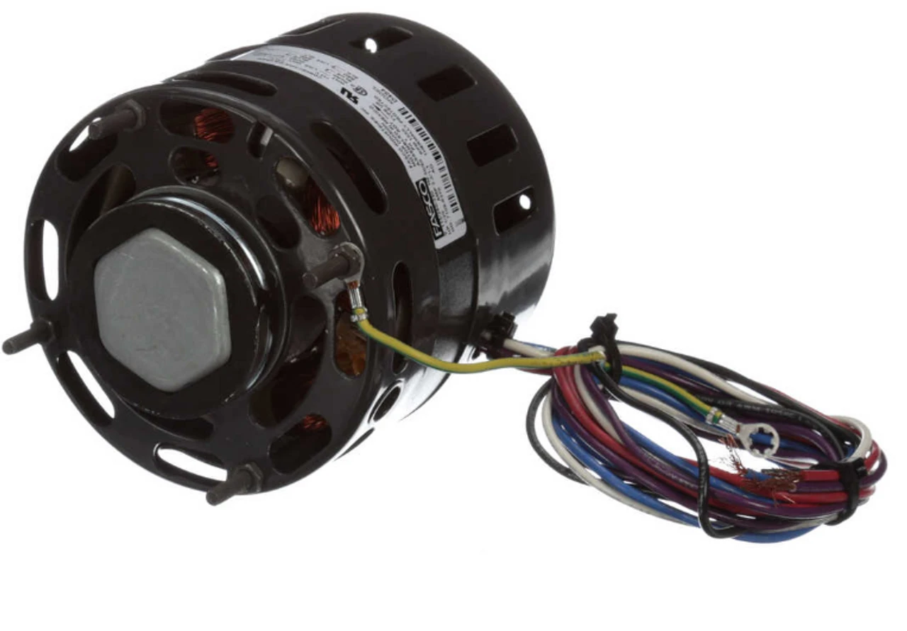 Application Information: Refrigeration Fan Motor. Shaded pole motor. Open ventilation-self cooled. Mechanically reversible. 3/8″ Shaft Diameter with adapter to convert to 1/2″ diameter. Weld nuts on a 3.5″ bolt center for stud mount. Extended hubs with rubber rings for base mount. Interchangeable with G.E. 21 and 29 frame motors and other Emerson, Universal and Franklin refrigeration motors. UL recognized, CSA certified. Can be operated on 50hz with air-over applications. GE Suggested replacement reference for: 2341, 2342