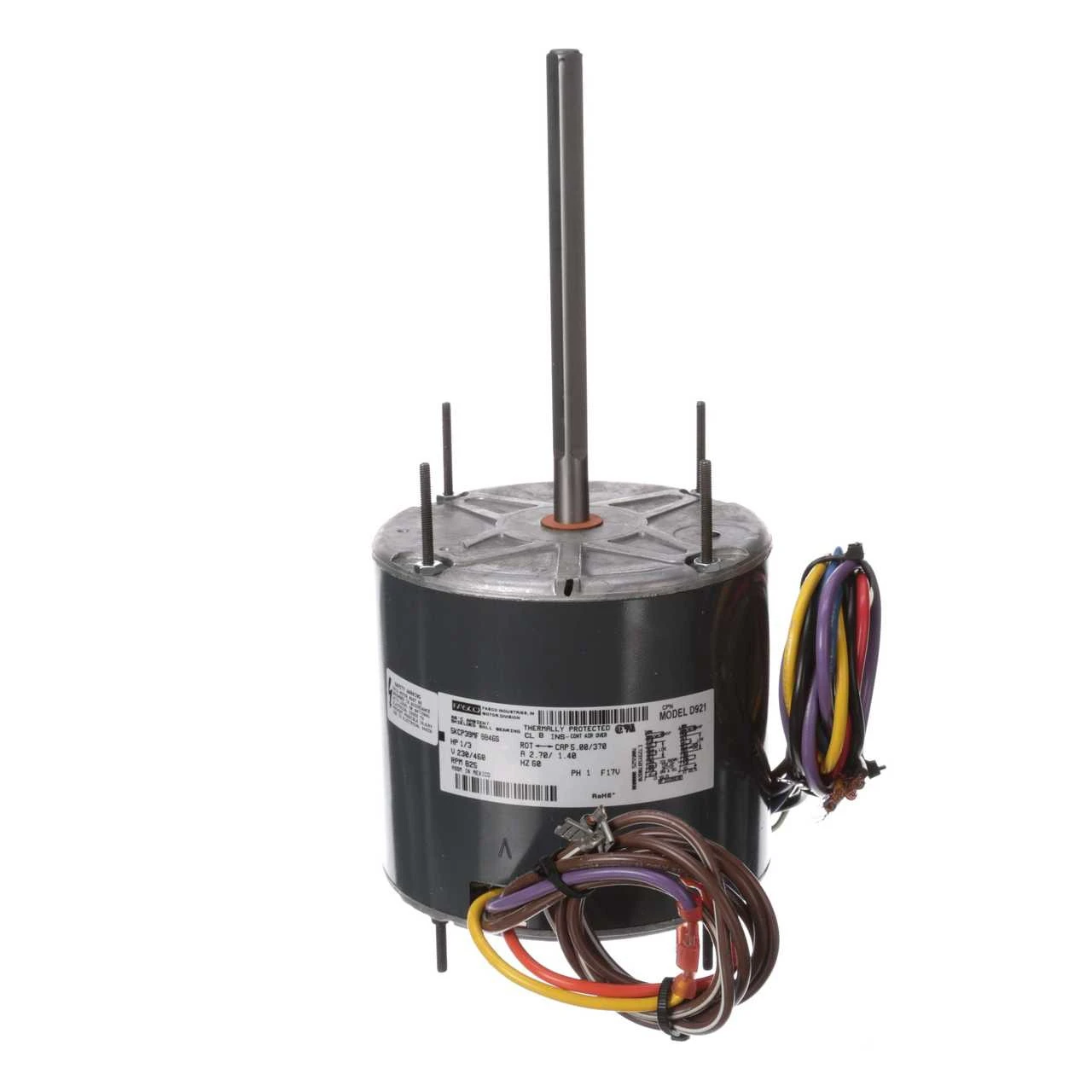 Application Information: Condenser Fan (Air Conditioner). Permanent Split Capacitor motor, Open Enclosure-air over. Shaft down or Horizontal mount. All angle mount ball bearings, CSA certified, UL recognized, 60 degrees ambient temperature rating. Includes unmounted conduit box.