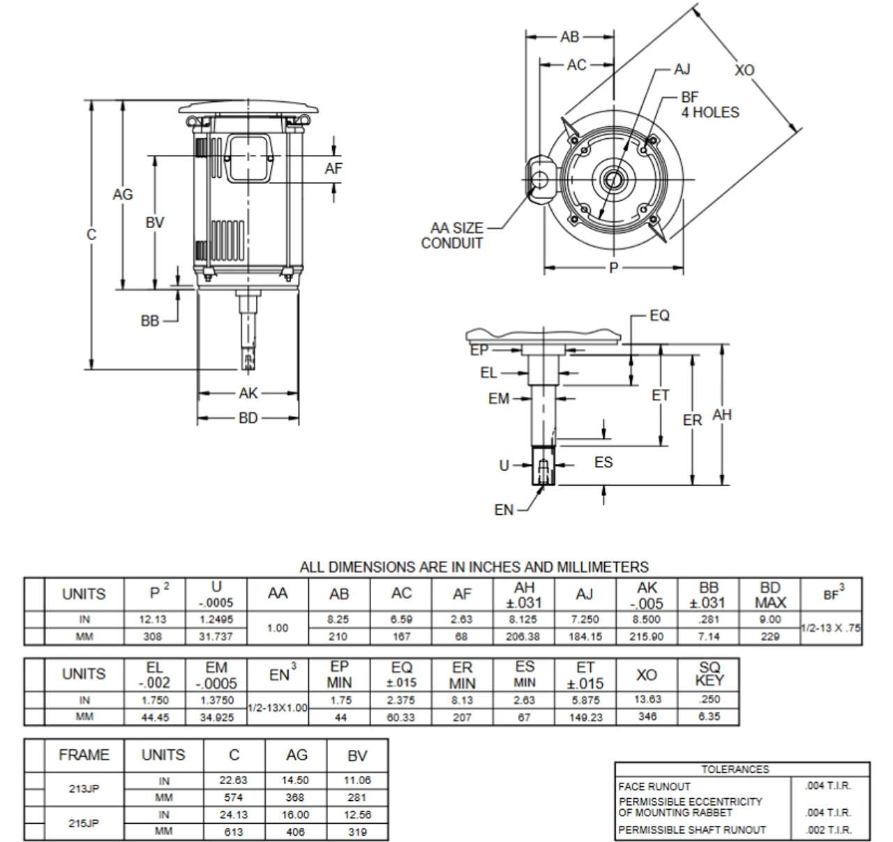 - NEMA 215JP Rolled Steel Frame, JP stainless steel shaft