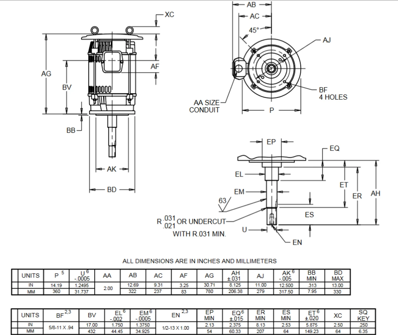 - NEMA 324JP Rolled Steel Frame, JP stainless steel shaft