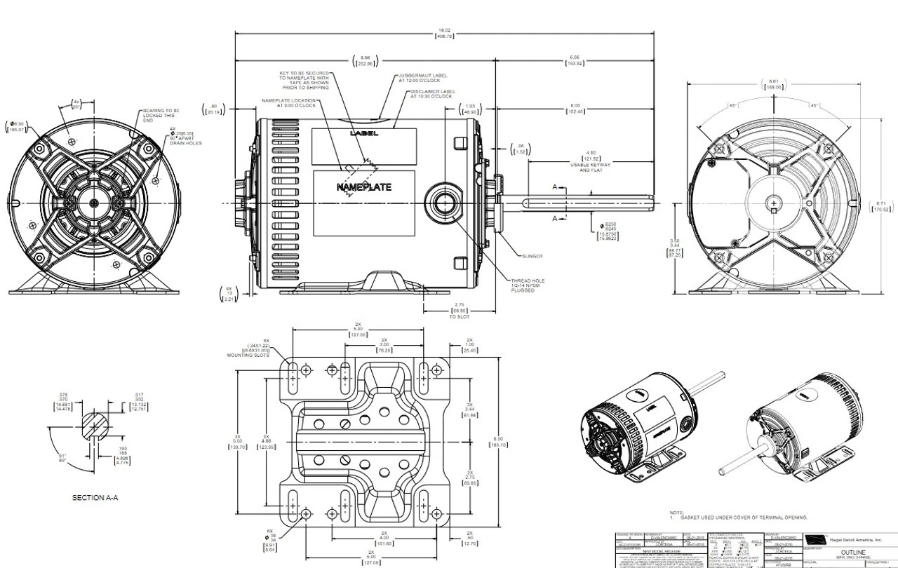 - NEMA 56HZ Frame, Keyed Shaft 5/8″ Diameter x 5″