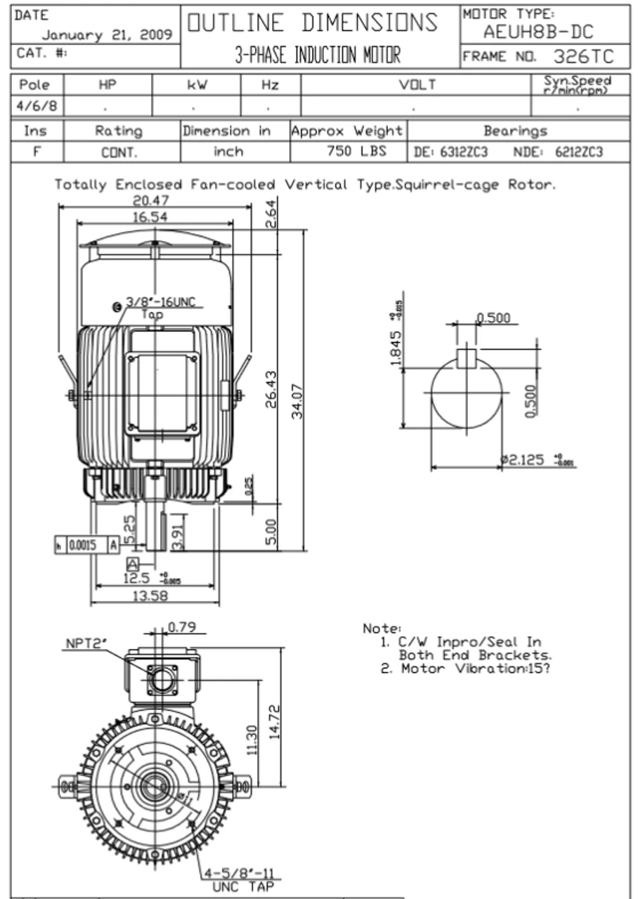 - NEMA 326TC Frame, 5 x 2 1/8″ Dia. Keyed Shaft