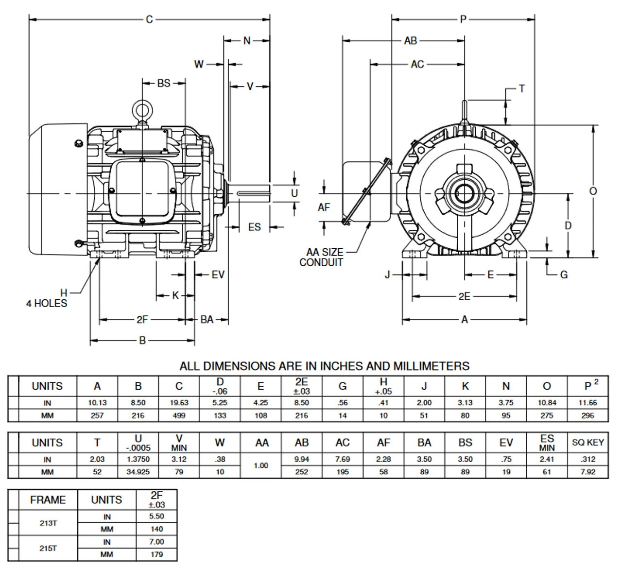 - NEMA 215T Cast Iron frame Keyed Shaft 1 3/8″ Diameter x 3 3/8″