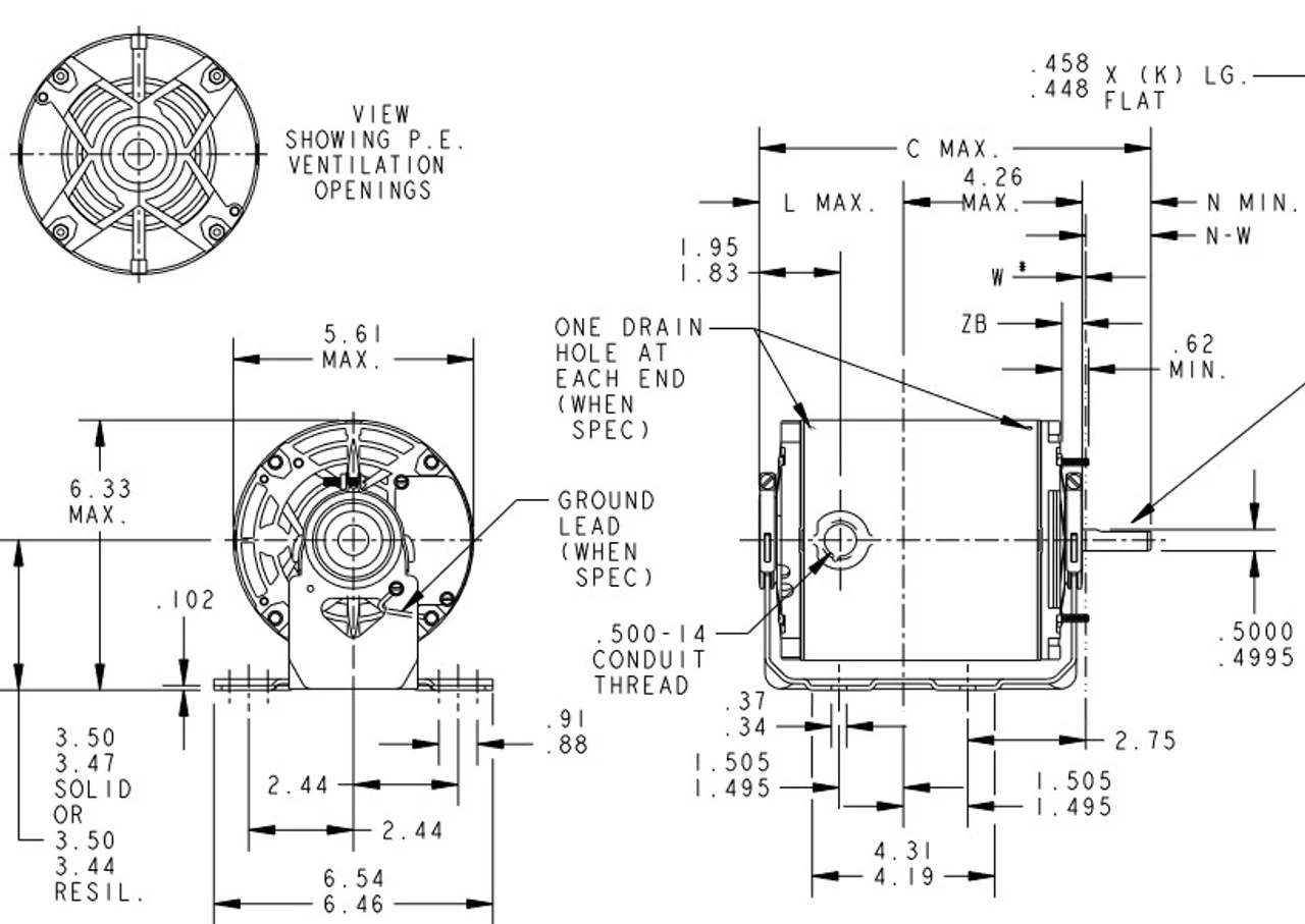 - Resilient Base, Reversible, Ball Bearings, Class B insulation