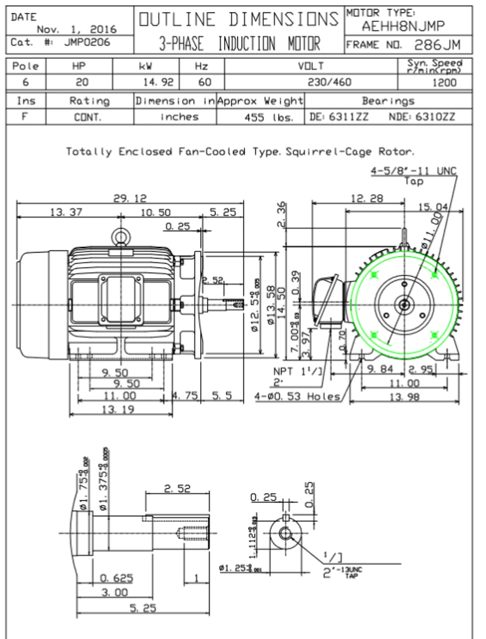 - Suitable for Inverter Use per NEMA MG-1 Part 31.4.4.2