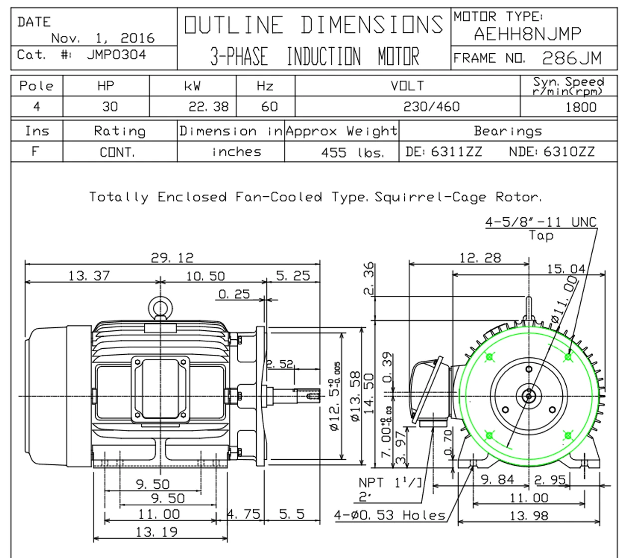 - Suitable for Inverter Use per NEMA MG-1 Part 31.4.4.2