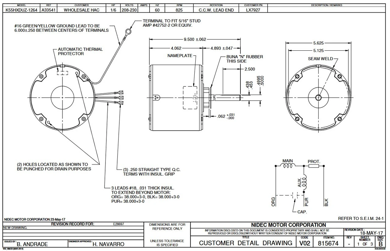 Permanent Split Capacitor Motor. Automatic Overload Protection. Continuous Duty; Totally Enclosed Air Over Enclosure; Class B Insulation; 40C Ambient Temperature. Application Lennox condenser fan motors. K055DUZ1264011B, Suggested after market replacement for 65G6001, K55HXDUY1263, K55HXGCE8094