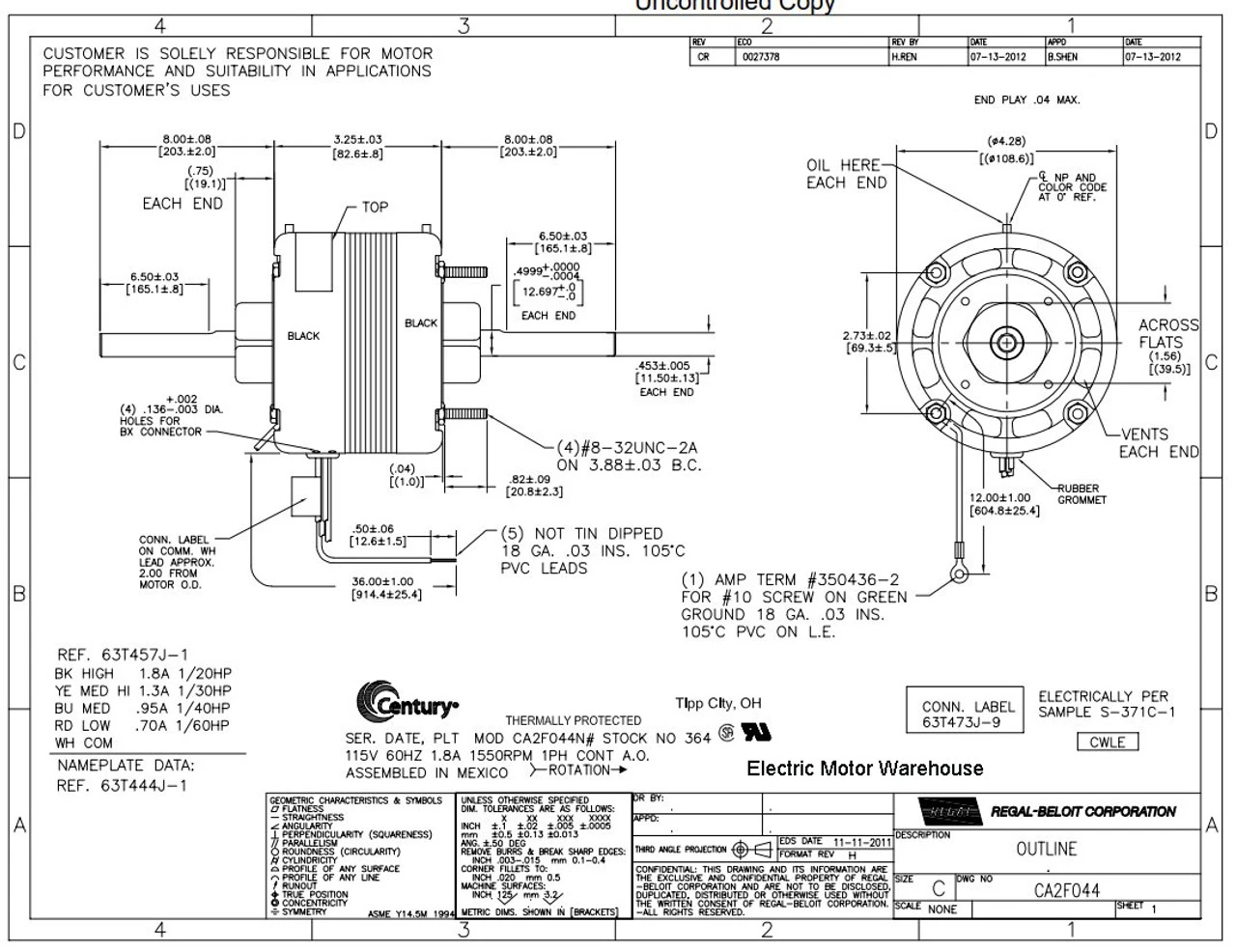 Shaded Pole Motor. Open Ventilation, Air Over. Application Information: Fan Coil A/C, Unit Heater Fan
